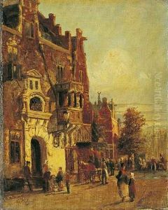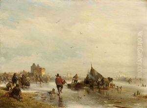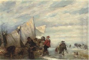 Winterlandschaft Mit Eislaufern Und Jagdgesellschaft