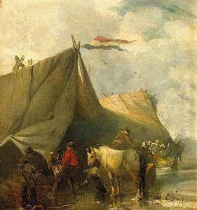 Die Ruckkehr Von Der Jagd. Landschaft Mit Zwei Jagern
