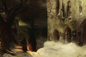 Winterabend: Heimkehrende Soldaten Vor Einem Wasserschlos