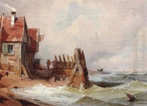 Fishermen Unloading Horsedrawn Carts On The Shore (+ Another Similar; Pair)