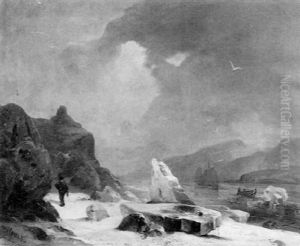 Winterliche Kustenlandschaft Mit Reitern Am Lagerfeuer