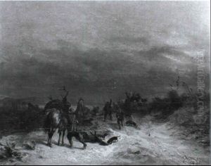 Jagdgesellschaft In Verschneiter Winterlandschaft