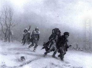 Peasants And A Horse-drawn Sledge In A Snowstorm