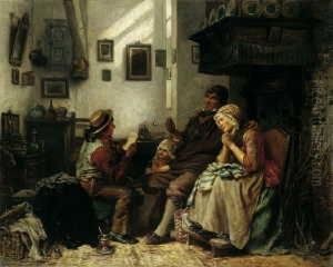 Hausliche Szene. Signiert Und Datiert Unten Rechts: Carl Hubner 1876. Ol Auf Leinwand. H 71,5; B 60,5 Cm.