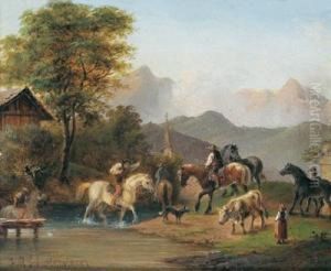 Carl I Schweninger was an Austrian artist known for his genre painting and landscapes. Born in 1854 in Austria, Schweninger showed an early talent for the arts and was encouraged to pursue his passion. He was the son of Carl Schweninger the Elder, who was also a painter, and it was under his father's guidance that he began his artistic training.