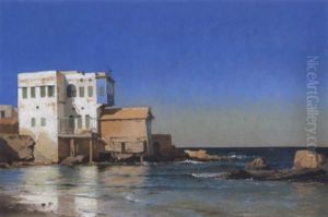 Kystparti Med Huse I Strandkanten, Middelhavet