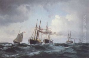 Livlig Trafik I Sundet Ud For Kronborg Med Fregatten Jylland Set Fra Bagbord