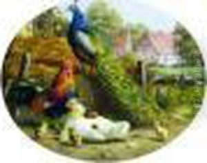 Der Huhnerhof. Auf Und Vor Einem Misthaufen Huhner, Enten, Ein Pfau Und Ein Truthahn.
