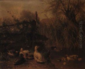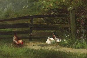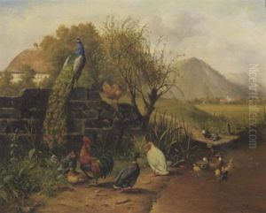 Enten, Kuken, Huhner, Hahn Und Pfau Im Hof