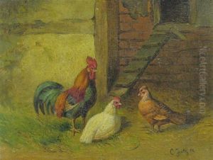 Bauernhof Mit Huhnern, Hahn Und Pfau