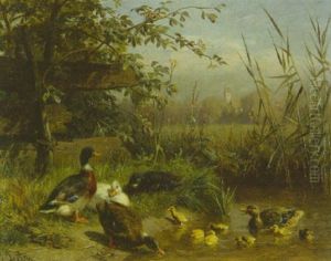 Entenparadies Am Teich Mit Lagernden Und Schwimmenden Enten Und Kuken
