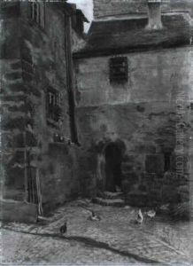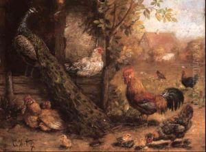 Stallinterieur Mit Hahn Und Drei Huhnern