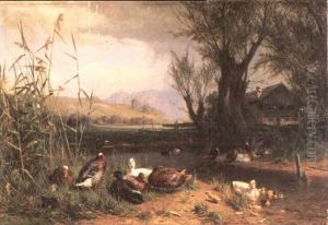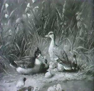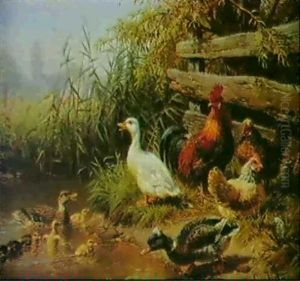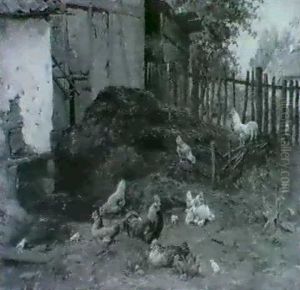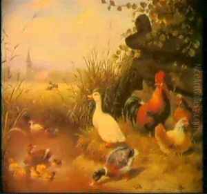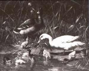 Ducks And Ducklings At A Pond & Chickens And Chicks By A Straw Mound