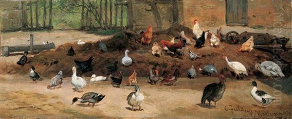 Geflugelhof Oil Painting by Carl Jutz the Elder