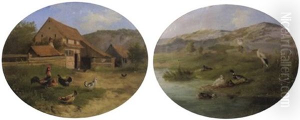 Huhnerhof Oil Painting by Carl Jutz the Elder