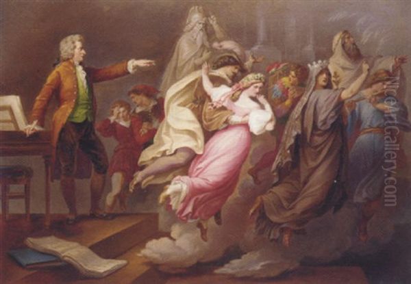Mozart Directing Imaginary Actors From The Operas 'don Giovanni' And 'the Magic Flute.'