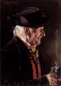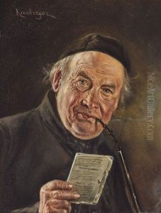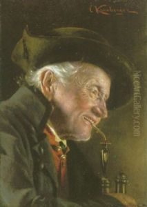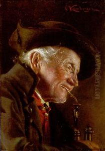 A Portrait Of An Old Man In A Black Felt Hat Smoking A Pipe
