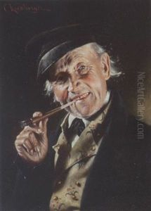 A Portrait Of An Old Man Smoking A Pipe (+ A Portrait Of An Old Woman; Pair)