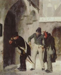 Ertappt - Ein Aus Dem Haus Kommender Dieb Wird Von Gendarmen Erawartet