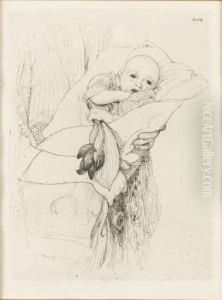 A studio idyll. The artist's wife and their daughter