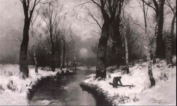 Faggot Gatherers In Winter Wood At Sunset