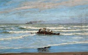 Coastal Scene With A Steamer In The Horizon