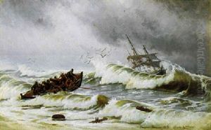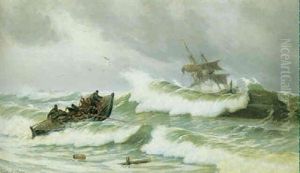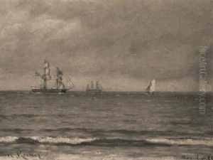 Marine Med Sejlskibe, I Baggrunden Den Svenske Kyst