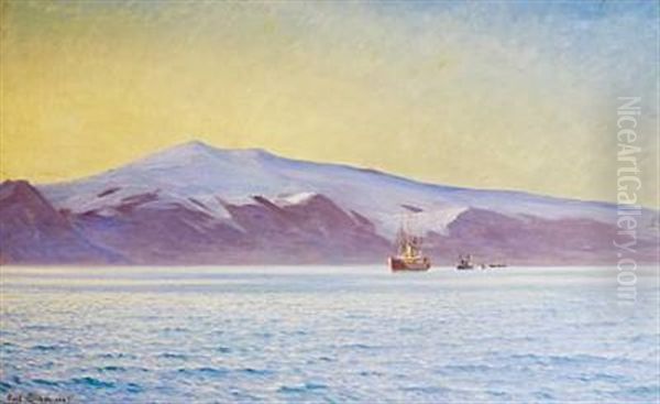 Hans Majestaet Kong Frederik Viii Ombord Pa Et Skib Naer Islands Kyst, I Baggrunden Bjerget Eyjafjaeldsjokul Oil Painting by Carl Locher