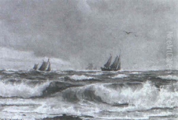 Marine Med Sejlskibe Oil Painting by Carl Locher