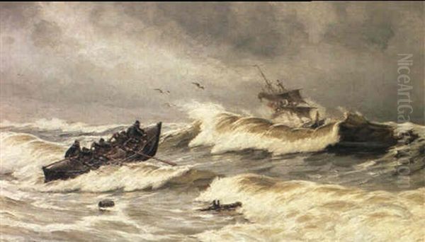Redningsbaden Gar Ud Oil Painting by Carl Locher