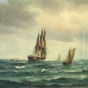 Seascape With Sailing Ships Oil Painting by Carl Locher