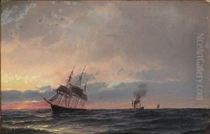 Steamboat, Pilot Boat And Sailing Ships In Oresund Near Kronborg