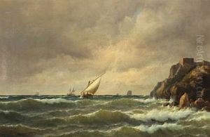 Coastal Scene With A Three-masted Schooner And Others Sailing Ships