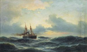 Seascape With Three Masted Steamer In The Moonlight