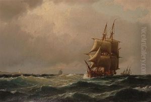 Larger Sailing Ships At Sea, In Fresh Weather