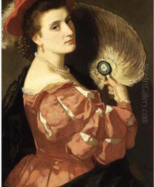 A Portrait Of An Elegant Lady Holding A Fan