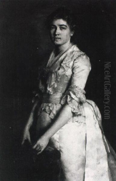 Junge Frau In Weisem Atlasgewand Mit Spitzen