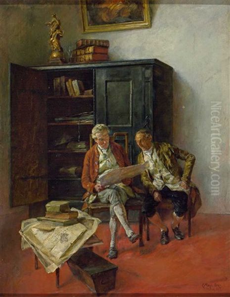 Zwei Bibliophile Studieren Eine Urkunde. Meisterlich Charakterisiert