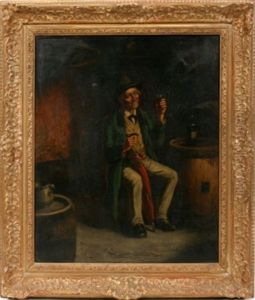 Ein Geiger Nimmt In Einer Taverne Einen Humpen Bier Zu Sich