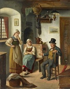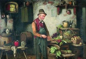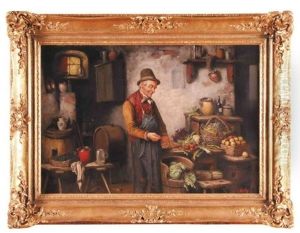 Kucheninterieur Mit Einem Gemusehandler, Der Sein Geld Zahlt