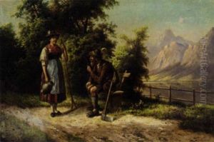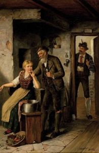 Ein Dirndl Im Gesprach Mit Einem Jungen Jager