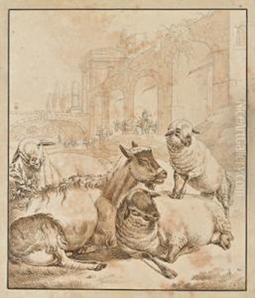 Schafe Vor Einer Landschaftsvedute Mit Ruinen