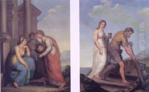Mytologisk Sceneri - Ung Pige Der Byder En Gammel Mand En Drik Under Et Trae