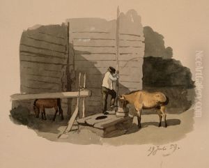 A Shepherdess Watering Her Cows
