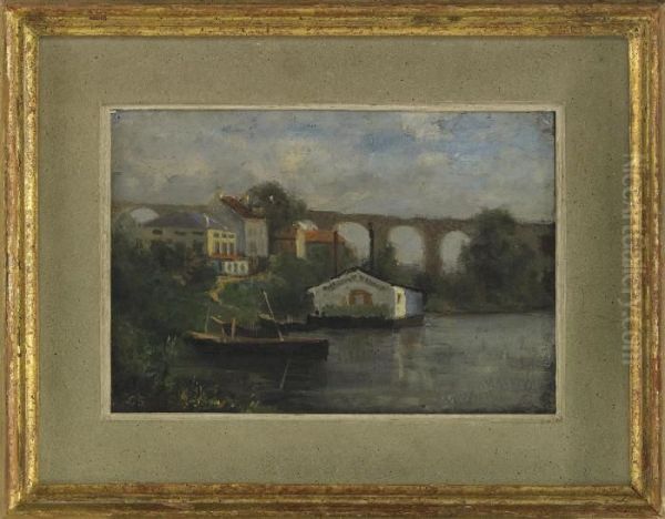 Franskt Flodlandskap Med Akvedukt