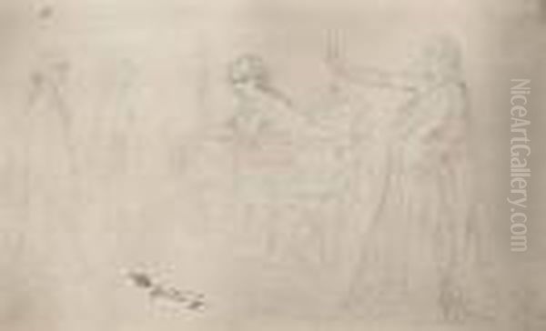 Studienblatt Mit Einem Jungen Madchen An Einem Balkon Und Weitere, Theaterhafte Figuren