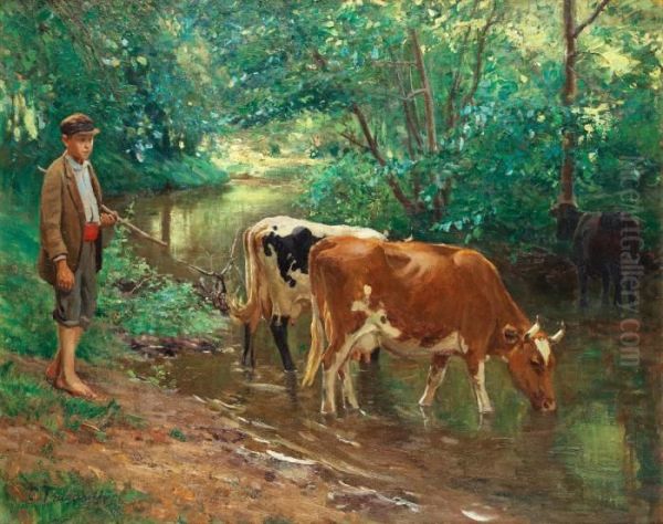 Bring the timeless beauty of Carl Tragardh's Young Herdsman With Cattle into your home with a handmade oil painting reproduction. Carefully recreated on canvas by skilled artists using traditional techniques, this piece captures the delicate brushwork, subtle light, and vibrant color of the original masterpiece. With museum-level quality and rich texture, it brings elegance and artistic depth to any space. Enjoy free shipping and make this masterpiece a part of your personal collection.