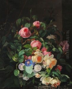 Still Life Of Silver, Birds, Fruit And A Shell With A Small Reflection Of The Artist
