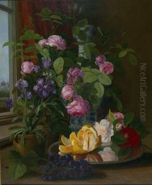 Stillleben Mit Blumen Und Fruchten.