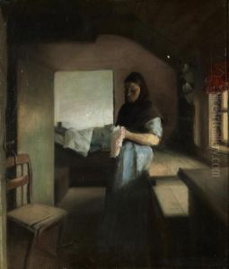 Interior With A Woman At Her Needlework